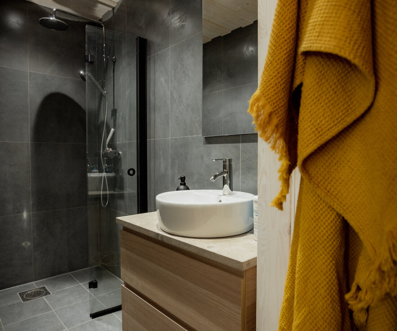 The Cottage has separate toilet and shower room, underfloor heating as well as outside decking with BBQ and shower (for summer use). Use of the Iglu Sauna is also included off-season (need to pre-book slot).